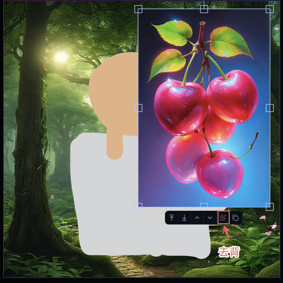在畫布中加入即時生成的圖像,比如我想要一個森林的背景,可以在生成之後將圖片拉滿版,然後圖層移動至最後。